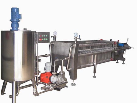 400X400系列硅藻土板框式過濾機過濾原理是利用硅藻土和紙板或濾布配合使用作為過濾介質,可對果汁、果酒、葡萄酒、茶飲料、糖漿、保健品、口服液、醫藥、中藥提取物、醋、醬油、明膠、油、化工、啤酒、黃酒等行業的液體過濾。通過該機分離的液體其濁度值可達0.4EBC以下,液體清亮透明。該設備并具有結構簡單,性能穩定可靠,操作方便等特點。